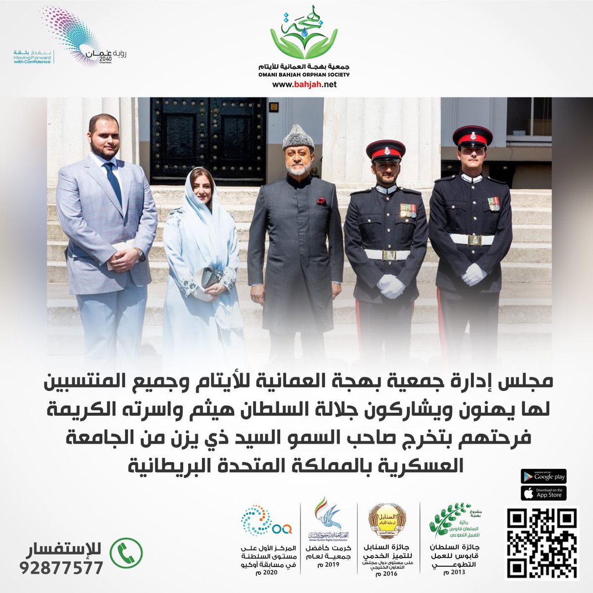 بواسطة oman156bahjah | يوليو 23, 2022 | Uncategorizedمجلس ادارة جمعية بهجة العمانية للايتام وجميع المنتسبين لها يهنون ويشاركون جلالة السلطان هيثم وأسرته الكريمة فرحتهم بتخرج صاحب السمو السيد ذي يزن من الجامعة العسكرية بالمملكة المتحدة